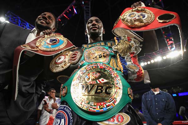 <<>> ศึกใหญ่เดิมพันเข็มขัดโลก 4 เส้นสถาบันหลัก ในพิกัด140 ปอนด์… ระหว่าง เทอเร้นซ์ ครอว์ฟอร์ด (31-0, 22KOs) แชมป์โลกซูเปอร์ไลต์เวต WBC/WBO ชาวอเมริกัน ประจัญกับ จูเลียส อินดองโก (22-0, 11KOs) แชมป์โลกของ WBA/IBF (และ IBO) รุ่นเดียวกัน ชาวนามิเบีย..จบลงไปแล้วตามคาดหมายของกูรู เกจิโลก เมื่อเจ้า อินดองโก มาไฟต์นี้ท้องบางเบา เกิ๊น เกิน พ่ายไปแค่ยก 3 …ครอว์ฟอร์ดยี้มเห็นแต่เขี้ยว ค้าว..ขาว..5555..